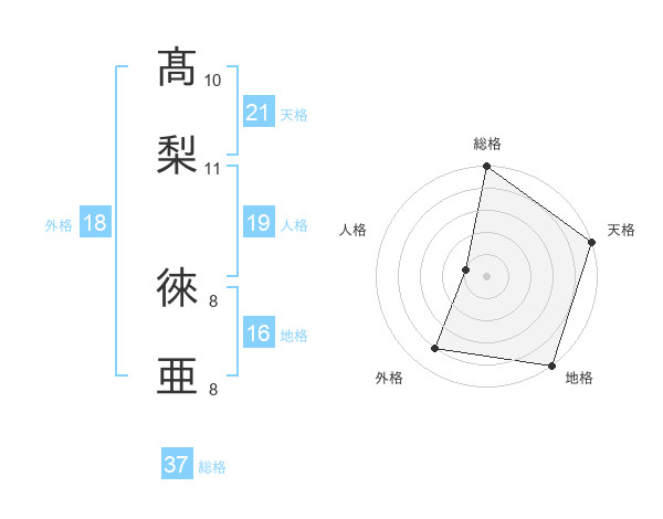 髙梨 徠亜さんの総格は37画の5点!