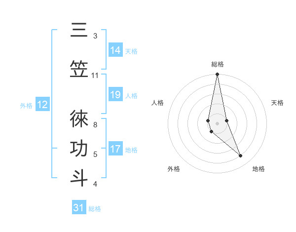 三笠 徠功斗さんの総格は31画の5点!