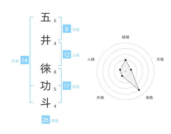 五井 徠功斗さんを姓名の画数から五運を鑑定