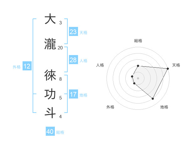 大瀧 徠功斗さんを姓名の画数から五運を鑑定