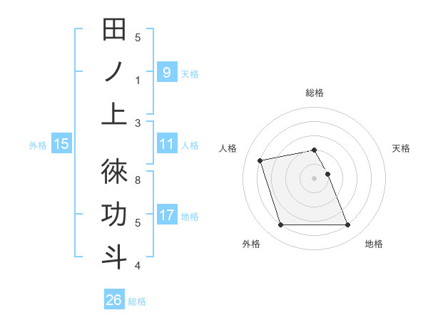 田ノ上 徠功斗さんを姓名の画数から五運を鑑定