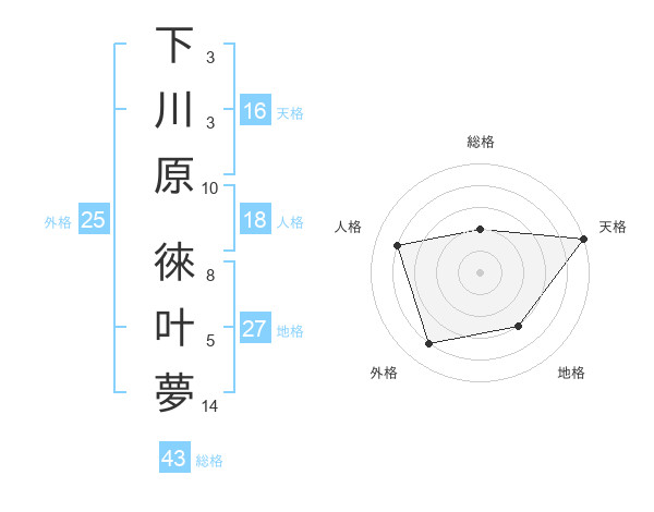 下川原 徠叶夢さんを姓名の画数から五運を鑑定