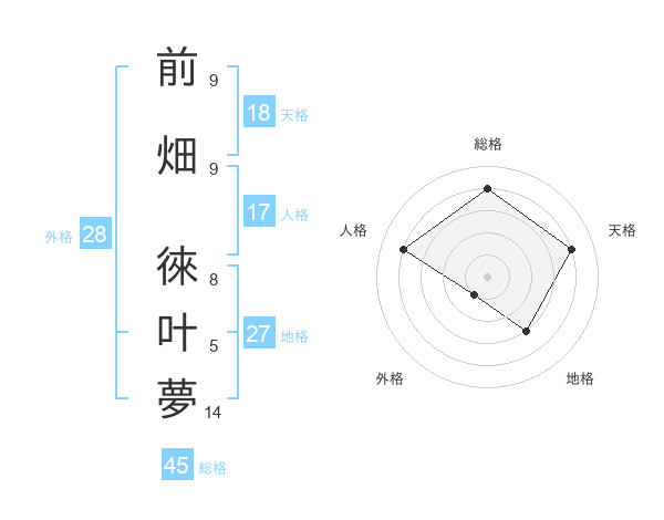 前畑 徠叶夢さんを姓名の画数から五運を鑑定
