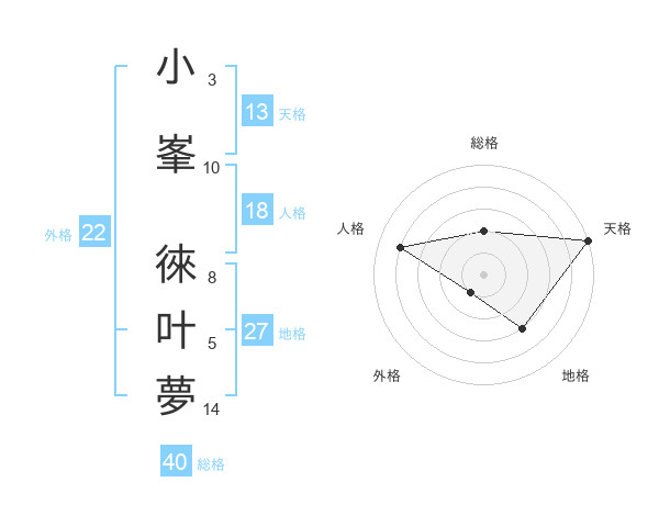 小峯 徠叶夢さんを姓名の画数から五運を鑑定