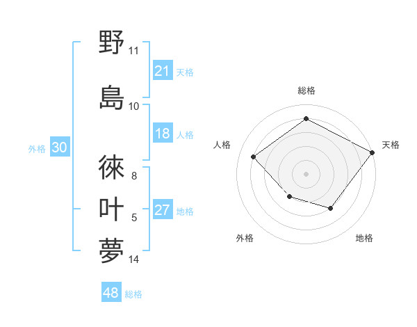 野島 徠叶夢さんの総格は48画の4点!