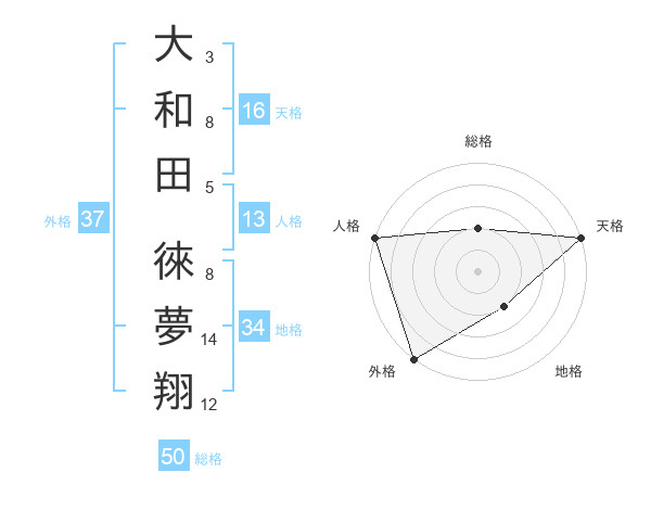 大和田 徠夢翔さんの総格は50画の2点