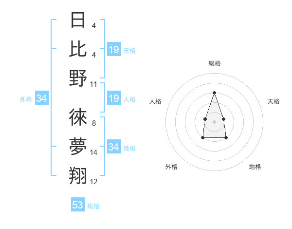 日比野 徠夢翔さんの総格は53画の3点!