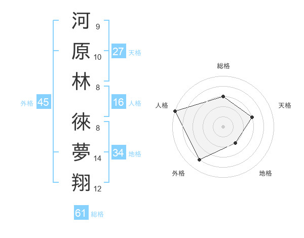 河原林 徠夢翔さんの総格は61画の3点!