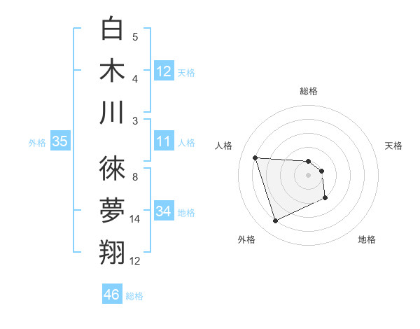 白木川 徠夢翔さんを姓名の画数から五運を鑑定