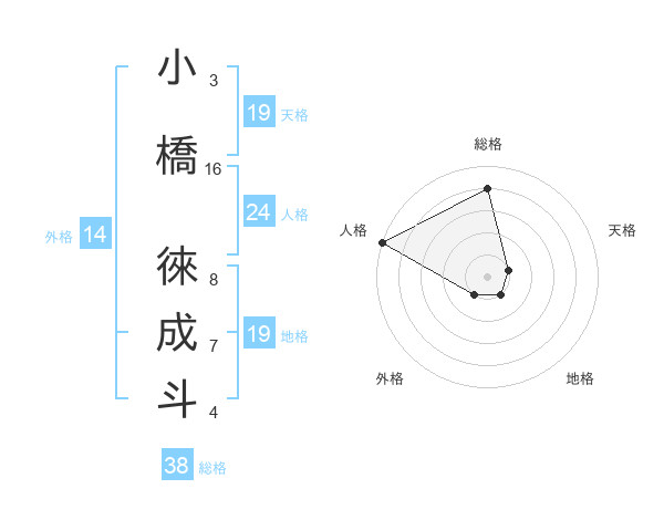 小橋 徠成斗さんの総格は38画の4点!