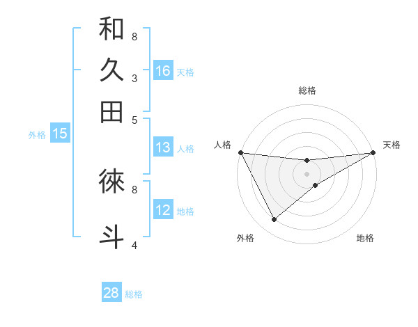 和久田 徠斗さんを姓名の画数から五運を鑑定