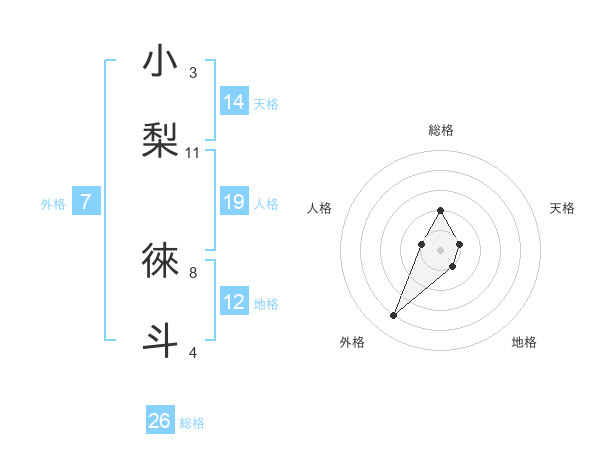 小梨 徠斗さんの総格は26画の2点!