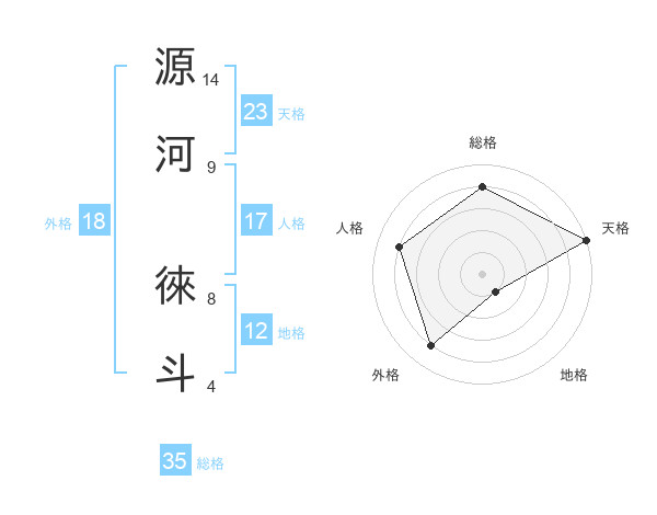 源河 徠斗さんの天格は23画の5点!