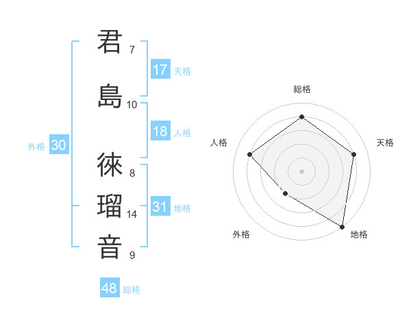 君島 徠瑠音さんの総格は48画の4点