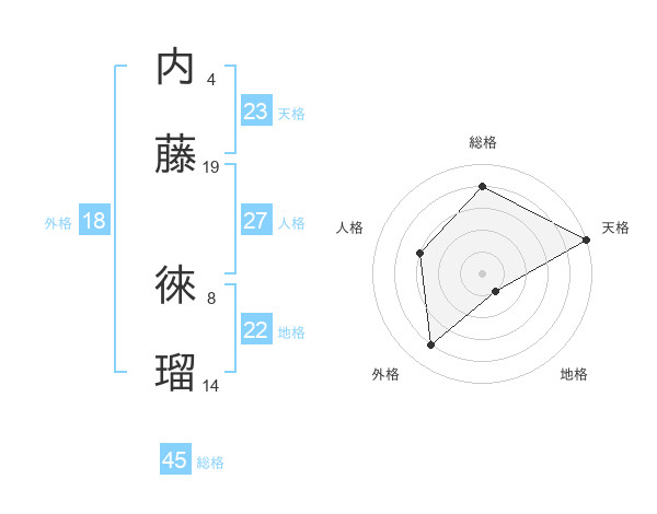 内藤 徠瑠さんの総格は45画の4点!