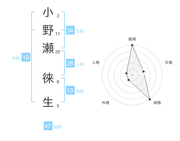 小野瀬 徠生さんを姓名の画数から五運を鑑定