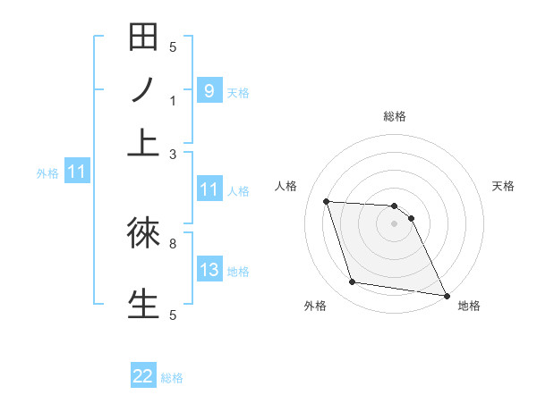 田ノ上 徠生さんを姓名の画数から五運を鑑定
