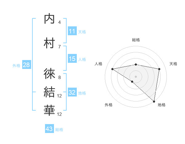 内村 徠結華さんを姓名の画数から五運を鑑定