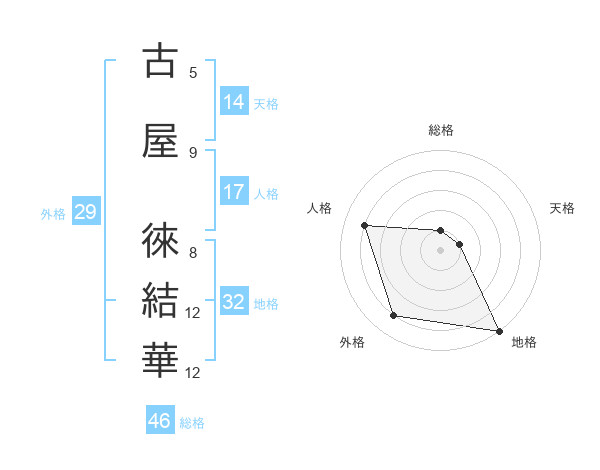 古屋 徠結華さんを姓名の画数から五運を鑑定