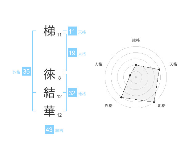 梯 徠結華さんの総格は43画の2点!