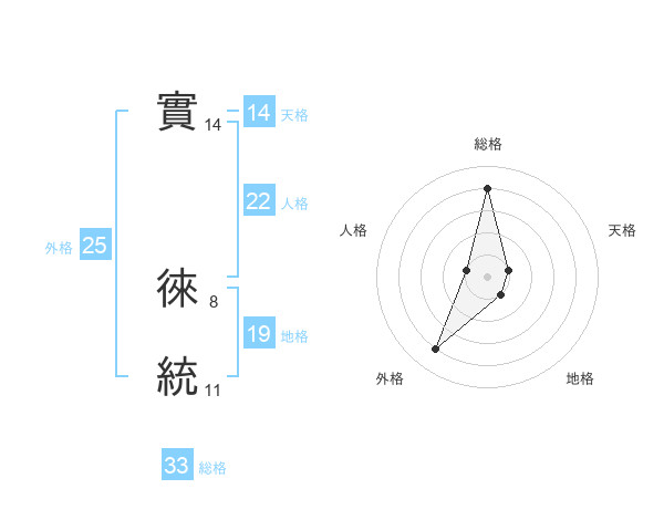 實 徠統さんの総格は33画の4点!