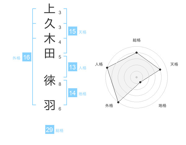上久木田 徠羽さんを姓名の画数から五運を鑑定