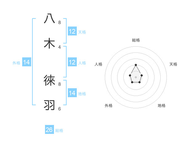 八木 徠羽さんの総格は26画の2点!