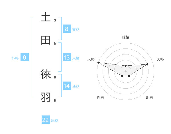 土田 徠羽さんを姓名の画数から五運を鑑定