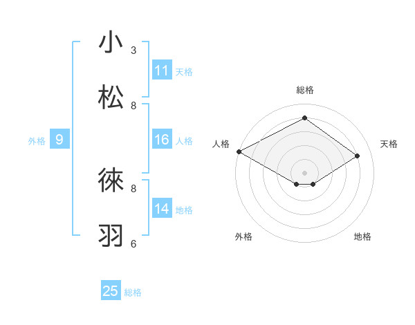 小松 徠羽さんの総格は25画の4点!
