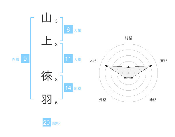 山上 徠羽さんを姓名の画数から五運を鑑定