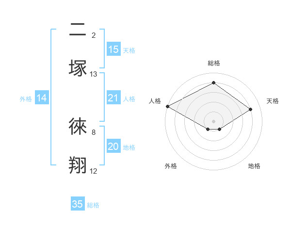 二塚 徠翔さんを姓名の画数から五運を鑑定