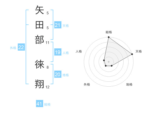 矢田部 徠翔さんを姓名の画数から五運を鑑定