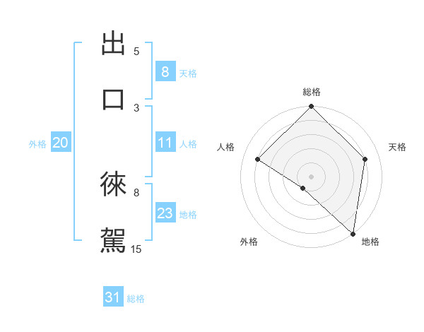 出口 徠駕さんを姓名の画数から五運を鑑定