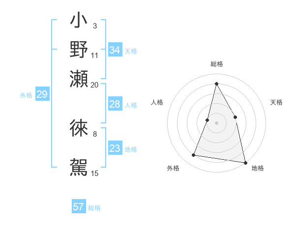 小野瀬 徠駕さんを姓名の画数から五運を鑑定
