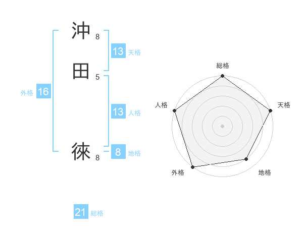 沖田 徠さんの天格は13画の5点!