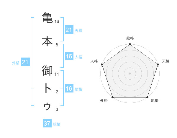 亀本 御トゥさんを姓名の画数から五運を鑑定