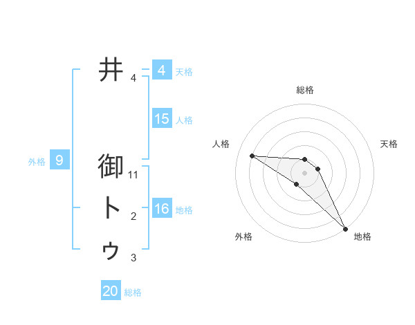 井 御トゥさんの総格は20画の1点!