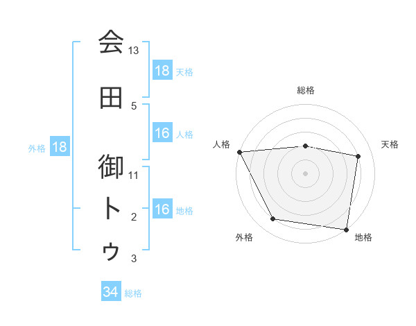 会田 御トゥさんの天格は18画の4点!