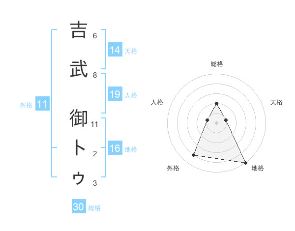吉武 御トゥさんを姓名の画数から五運を鑑定