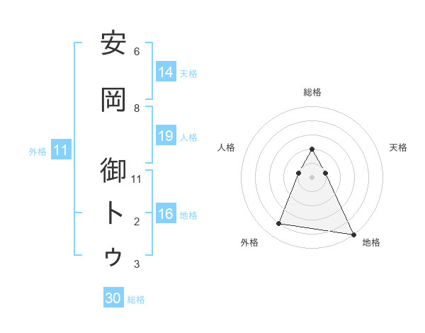 安岡 御トゥさんの総格は30画の2点!
