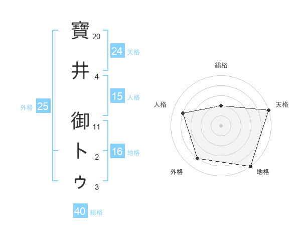 寶井 御トゥさんを姓名の画数から五運を鑑定