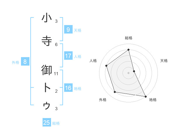 小寺 御トゥさんの総格は25画の4点!