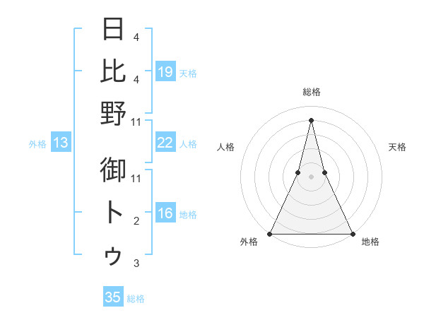 日比野 御トゥさんを姓名の画数から五運を鑑定