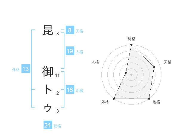 昆 御トゥさんを姓名の画数から五運を鑑定