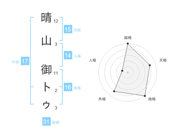 晴山 御トゥさんを姓名の画数から五運を鑑定