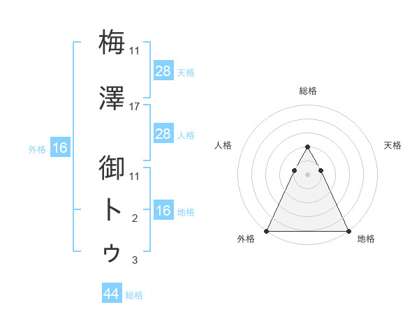 梅澤 御トゥさんを姓名の画数から五運を鑑定