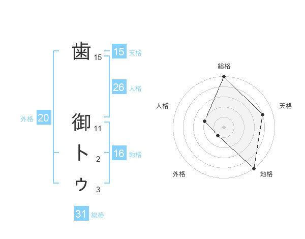 歯 御トゥさんの総格は31画の5点!