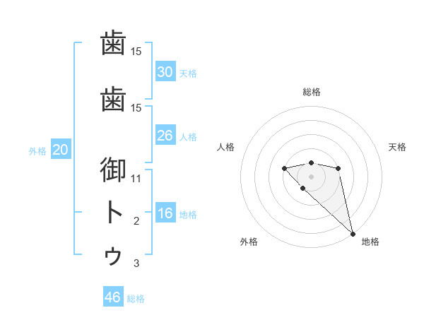歯歯 御トゥさんを姓名の画数から五運を鑑定