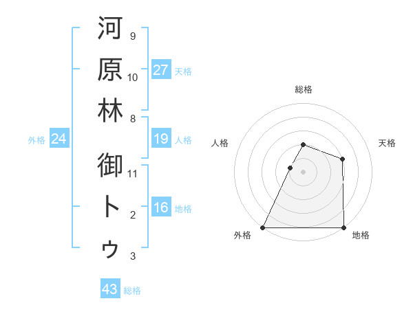河原林 御トゥさんを姓名の画数から五運を鑑定