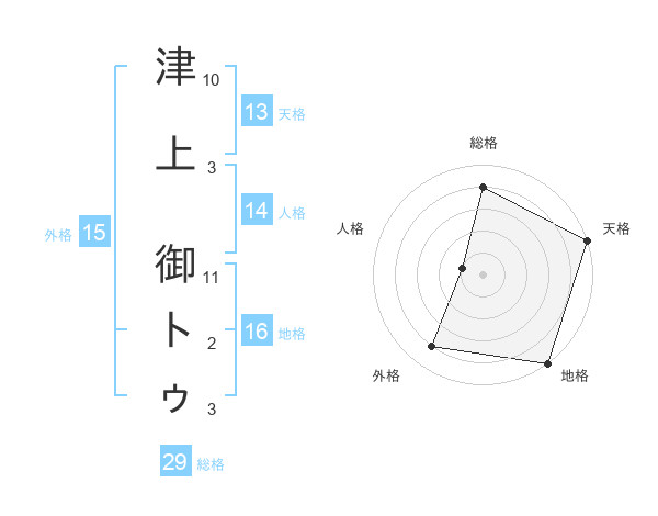 津上 御トゥさんの総格は29画の4点!